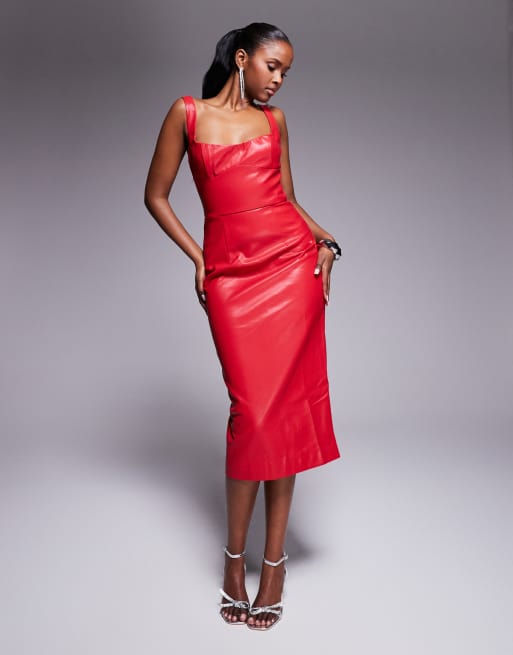 Bardot PU bodycon midi dress in red