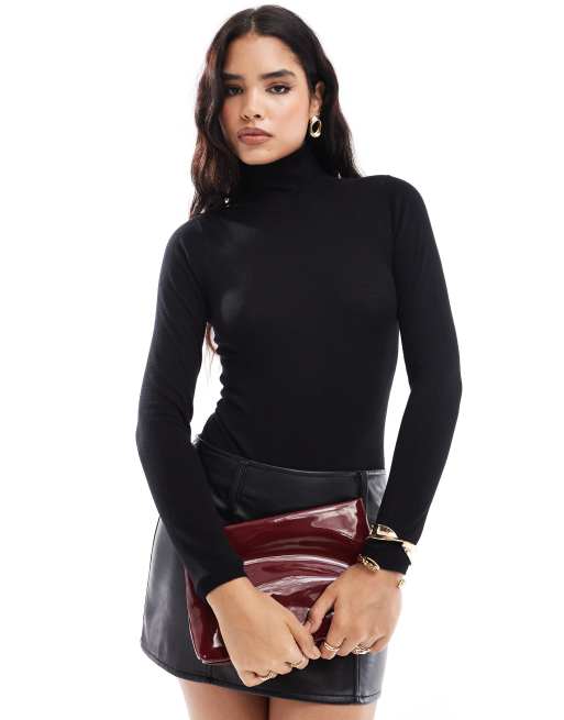 Bardot roll neck knit bodysuit in black