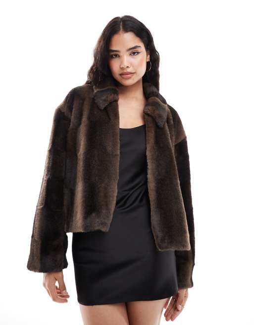 Bardot zip faux fur jacket in dark chocolate