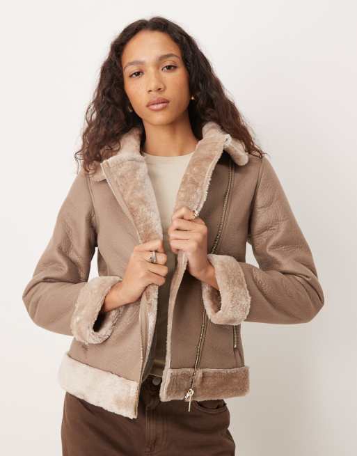 Barneys Originals Faux shearling cropped aviator in beige