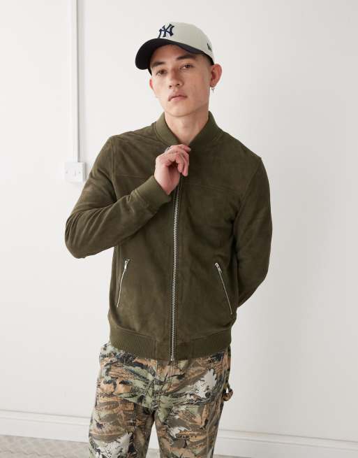 Barneys originals goat suede bomber jacket in khaki
