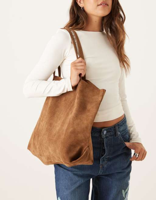 Barneys originals oversized suede tote bag in tan