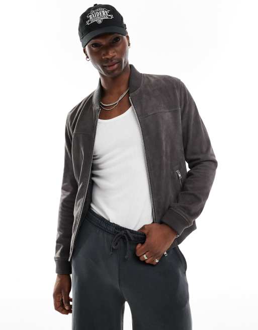 Barneys Originals suede bomber jacket in grey in grey