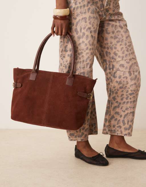 Barneys originals suede shoulder bag in chocolate