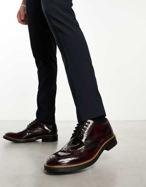 Base London Woburn Hi-Shine Brogue Shoe in Wine