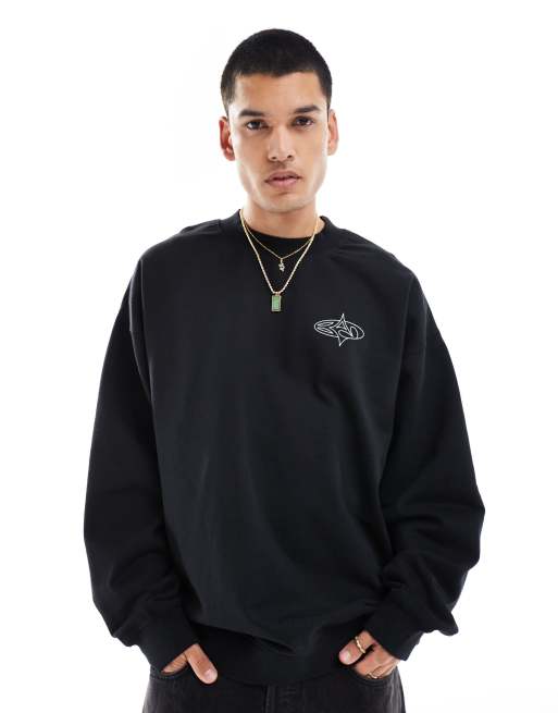 Basic Pleasure Mode blaine motif oversized crew neck sweater in black
