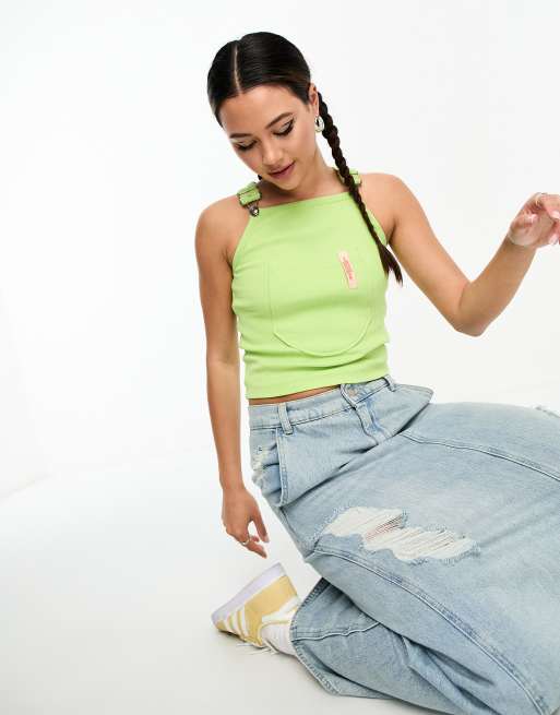 Basic Pleasure Mode dungaree detail tank top in lime green
