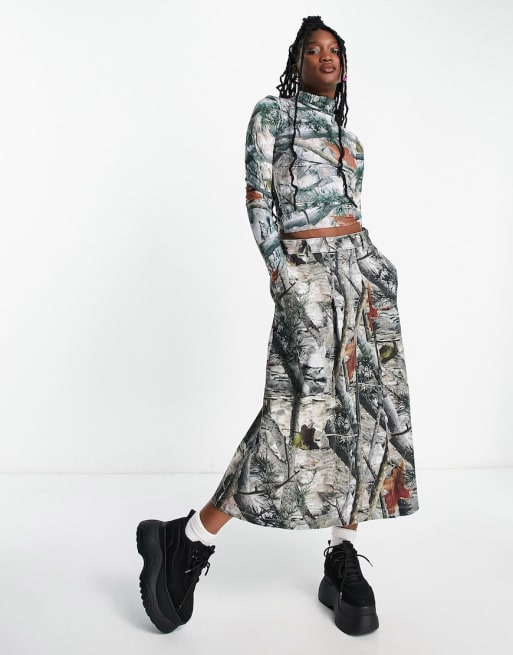 Basic Pleasure Mode hunter camo top and midi skirt co-ord in multi