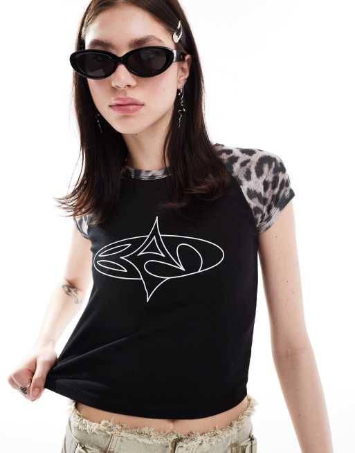 Basic Pleasure Mode leopard print motif tshirt in black