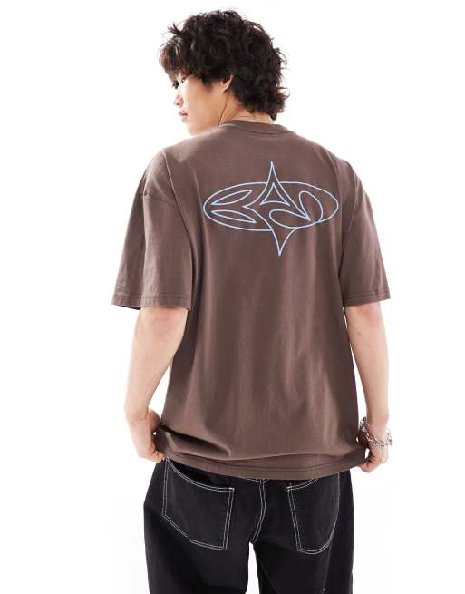 Basic Pleasure Mode motif oversized tshirt in washed brown