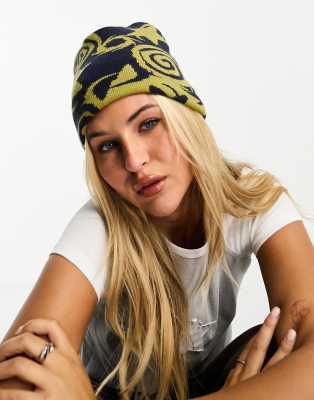 Basic Pleasure Mode spyro reversible graphic print beanie in yellow and blue