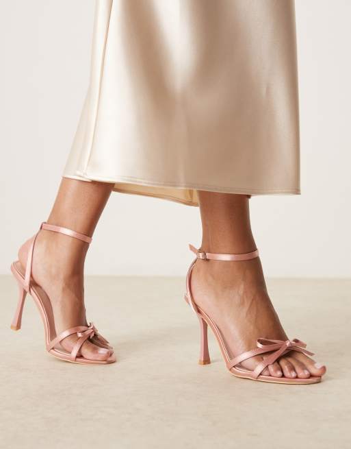 Be Mine wide fit Sharly heeled sandals with bow detail in satin blush