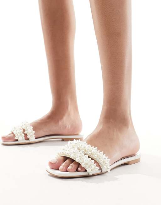 Be Mine Bridal Kiely pearl embellished flat sandals in ivory