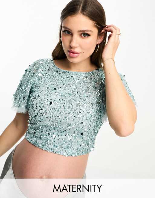 Beauut Maternity Bridesmaid embellished top with flutter back in ice blue