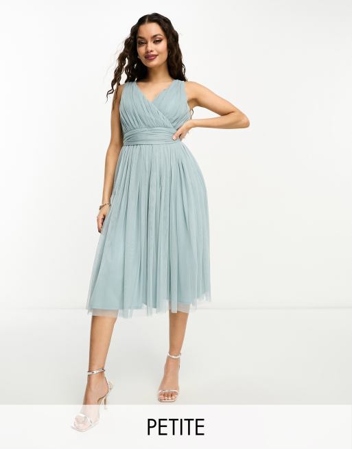Beauut Petite Bridal midi tulle with bow back in misty green
