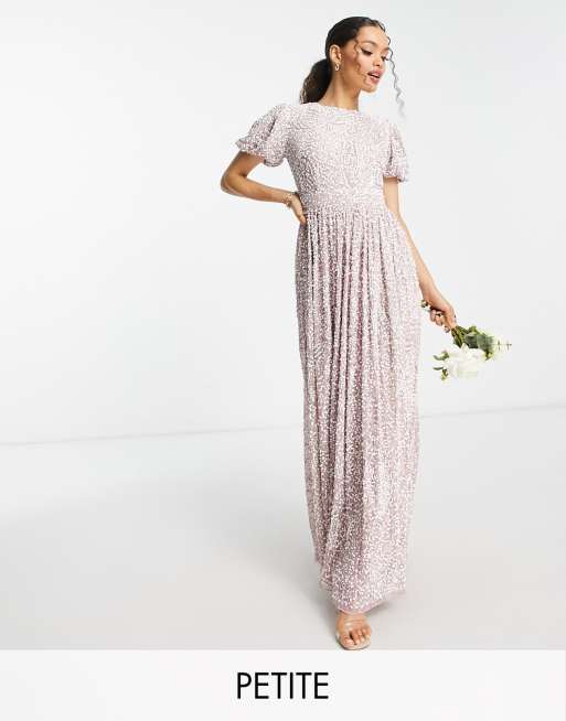 Beauut Petite Bridesmaid allover embellished maxi dress with contrast embellishment in frosted pink