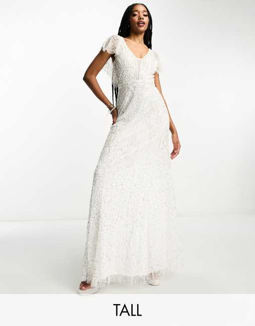 Beauut Tall Bridal statement embellished maxi dress in cream and gold