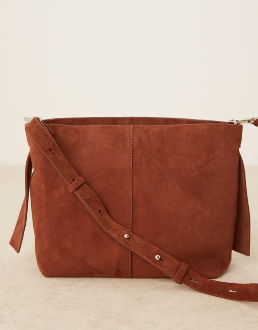 Becksondergaard fraya suede shoulder bag with crossbody strap in brown