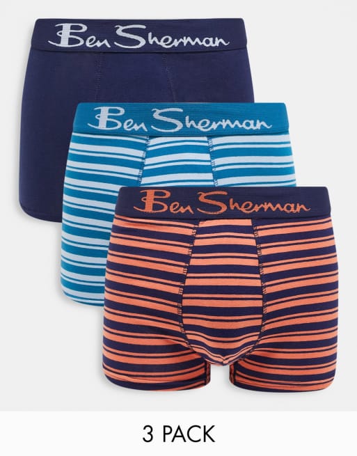 Ben Sherman Davian 3 pack trunks in navy red and blue