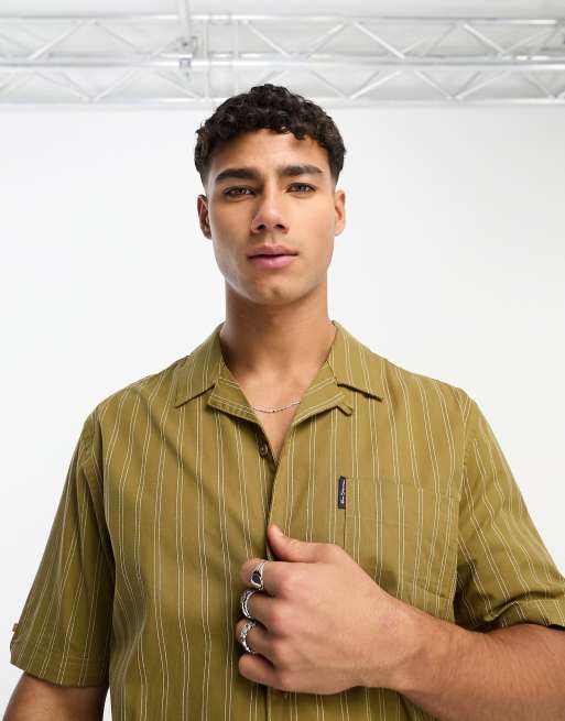 Ben Sherman short sleeve stripe shirt in khaki