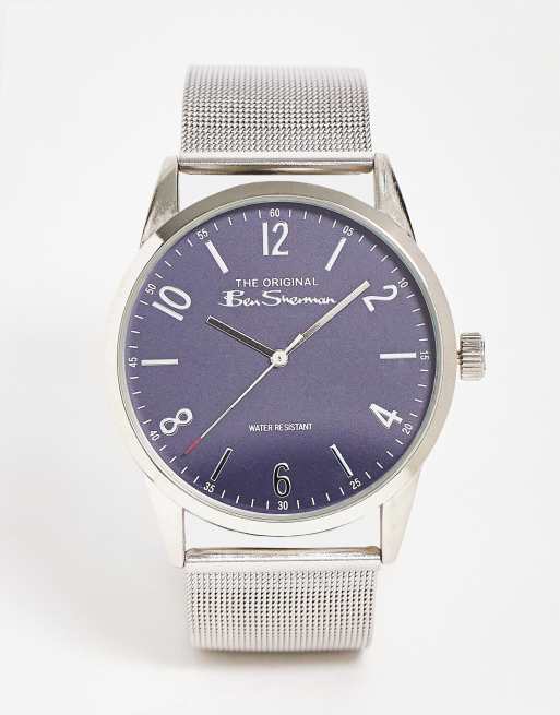 Ben Sherman stainless steel mesh strap watch in silver with navy dial