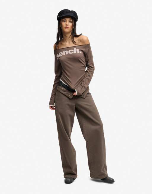 Bench x Superdry & Co Fitted long sleeve layer top in chocolate chip/ moonbeam
