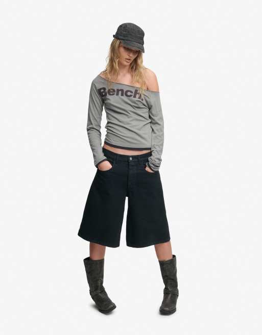 Bench x Superdry & Co Fitted long sleeve layer top in moonmist/ charcoal