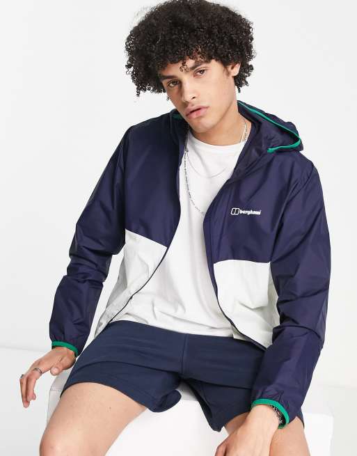 Berghaus Corbeck packable lightweight windproof jacket in navy and white