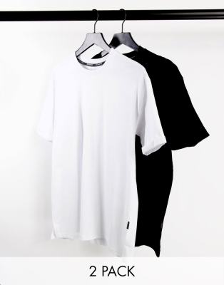 Bershka 2 pack longline t-shirts in black and white