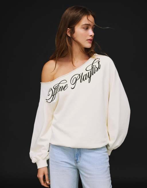 Bershka Asymmetric print sweatshirt in ecru