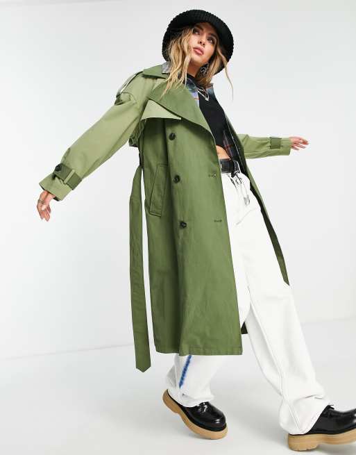 Bershka back detail trench coat in khaki