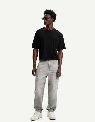 Bershka baggy cargo jeans in light grey