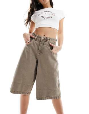 Bershka baggy longline jorts in washed brown