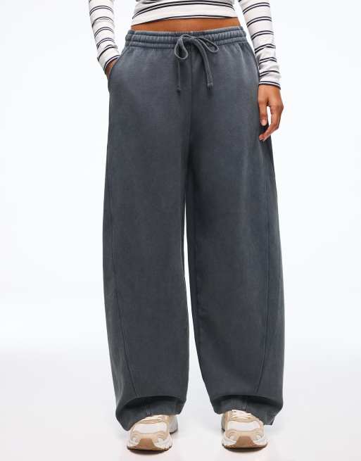 Bershka Barrel plush trousers with stoppers in dark grey