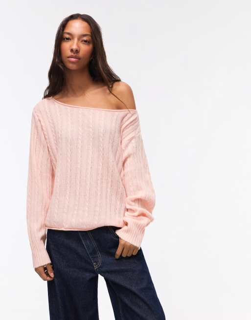 Bershka Braided jumper in pink