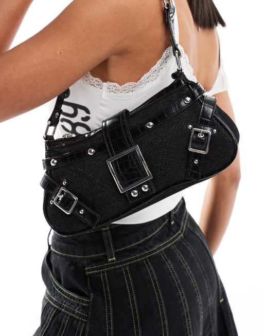 Bershka buckle detail shoulder bag in black