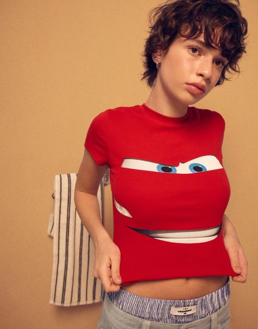 Bershka Cars short sleeve print t-shirt in red