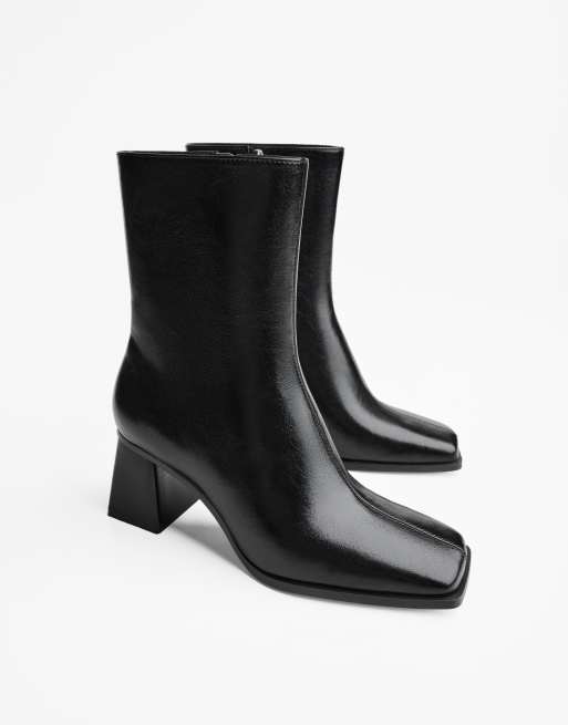 Bershka Chunky heel ankle boots in black