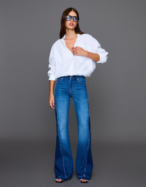 Bershka Contrast flared jeans in mid blue