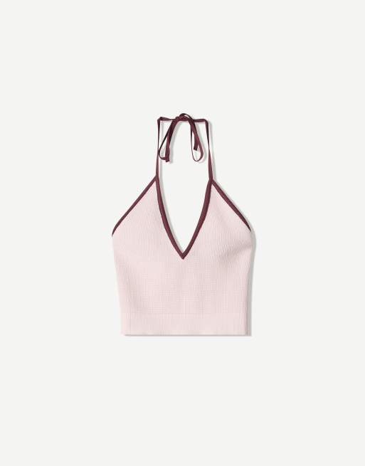 Bershka contrast halter top in pink