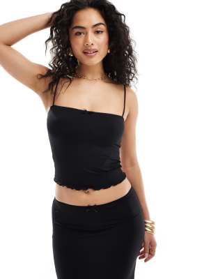 Bershka contrast trim bow detail strappy top co-ord in black