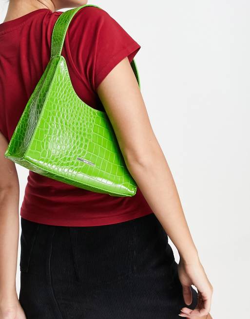 Bershka croc detail shoulder bag in bright green
