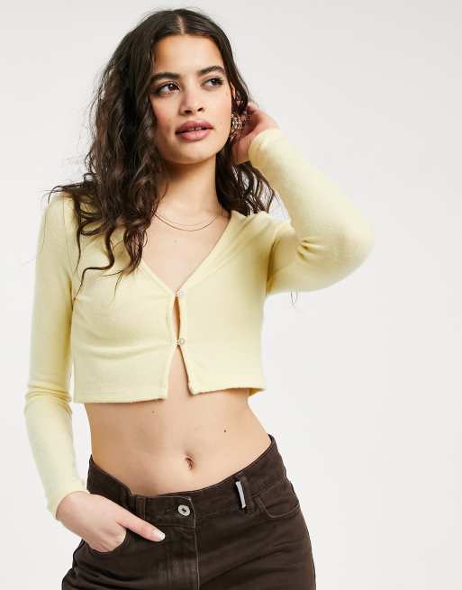 Bershka cropped cardi in yellow