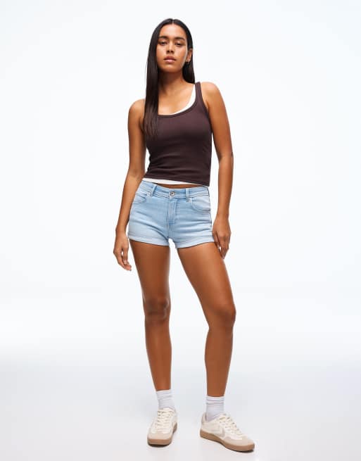 Bershka Denim roll-up shorts in light bue