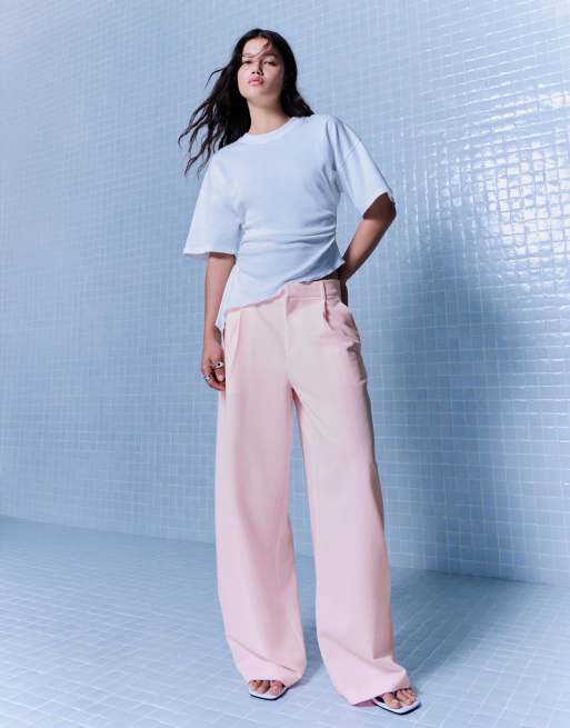 Bershka Double fabric voluminous trousers in pink