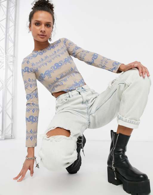 Bershka dragon print bodysuit in camel