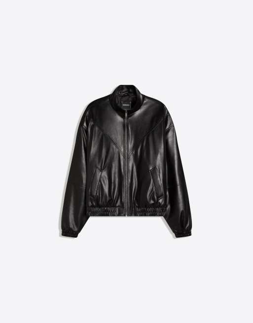 Bershka Faux leather jacket in black