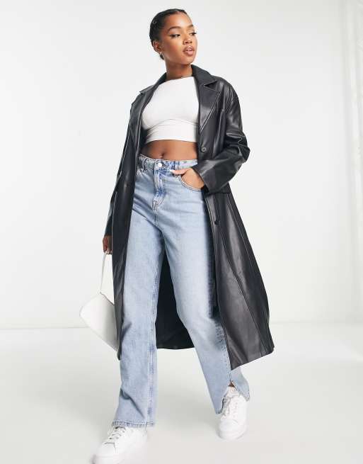 Bershka faux leather seam detail tailored coat in black