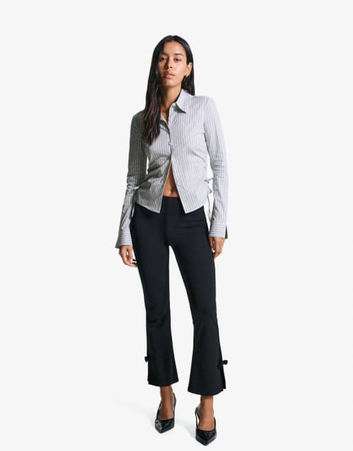 Bershka Fitted shirt with gathered side in grey