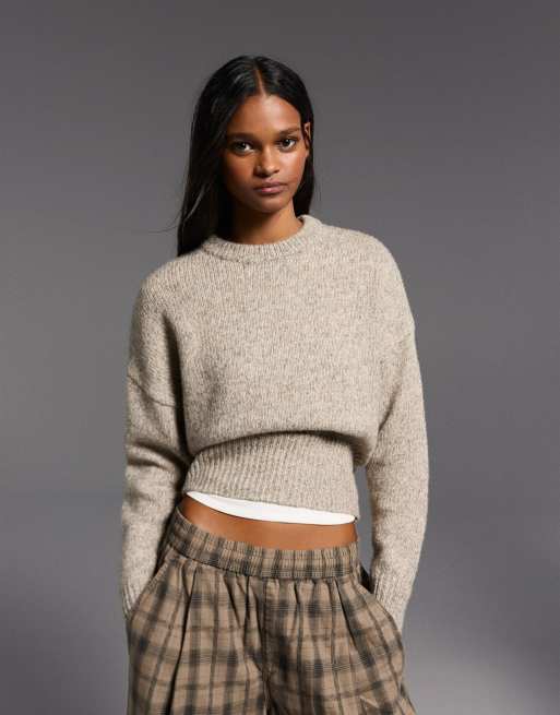 Bershka Fitted-waist jumper in brown